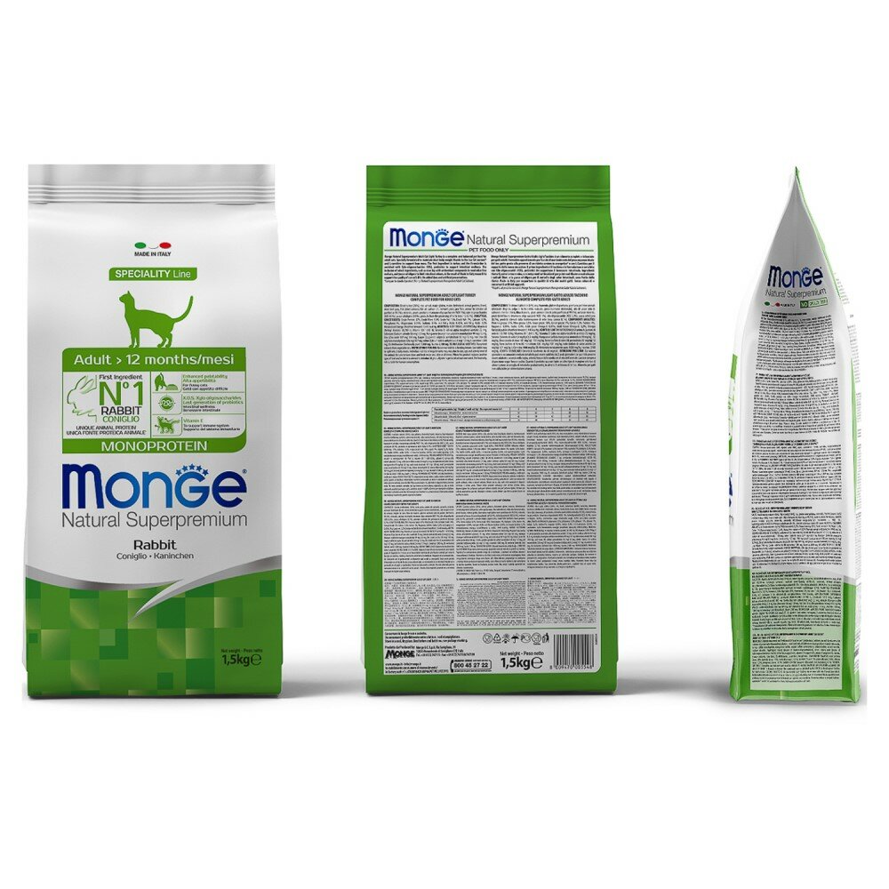 MONGE SPECIALITY MONOPROTEIN CAT ADULT RABBIT монобелковый для взрослых кошек с кроликом (1,5 кг)