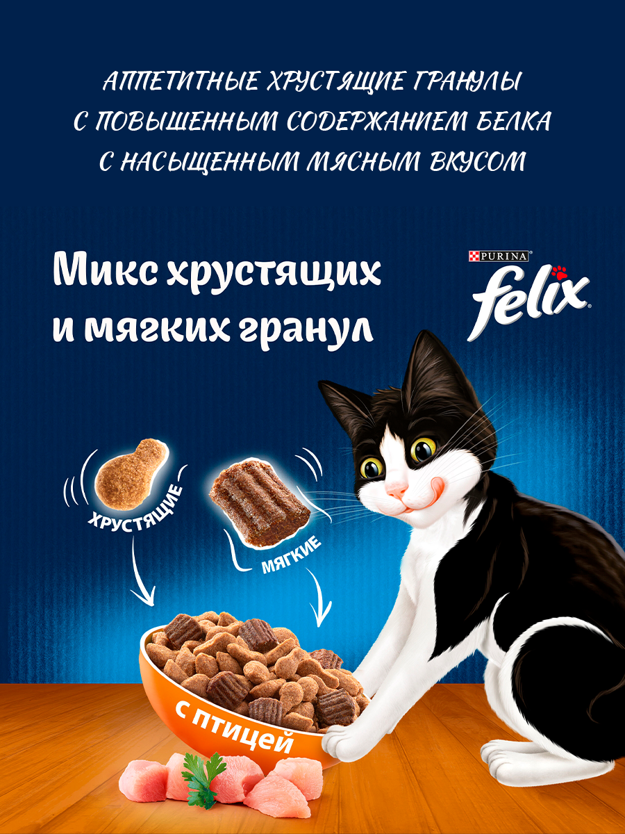 СохранитьFelix Сухой корм для взрослых кошек, с птицей, Двойная вкуснятина, 1300 г, 3шт интересное: