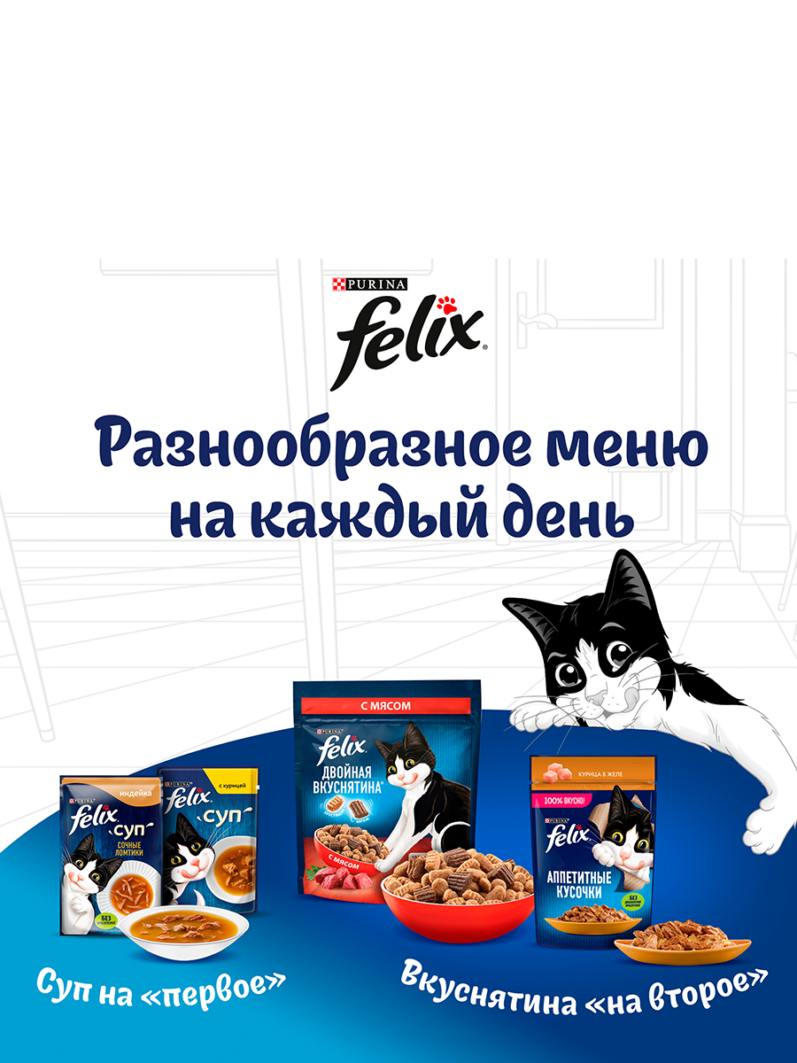 | Плюсы: | Хорошо упаковано в коробку. Моя кошка есть только Феликс. Его и ветеринары рекомендуют. Цена на Яндексе приятнее, чем в супермаркетах. |