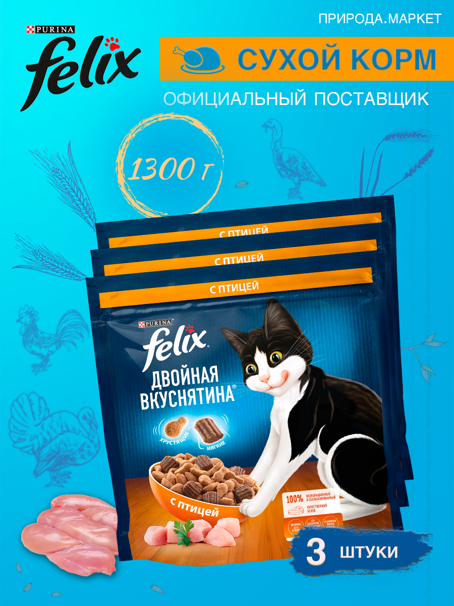 Сухой корм для кошек Felix Двойная вкуснятина с птицей 1.3 кг 3 шт