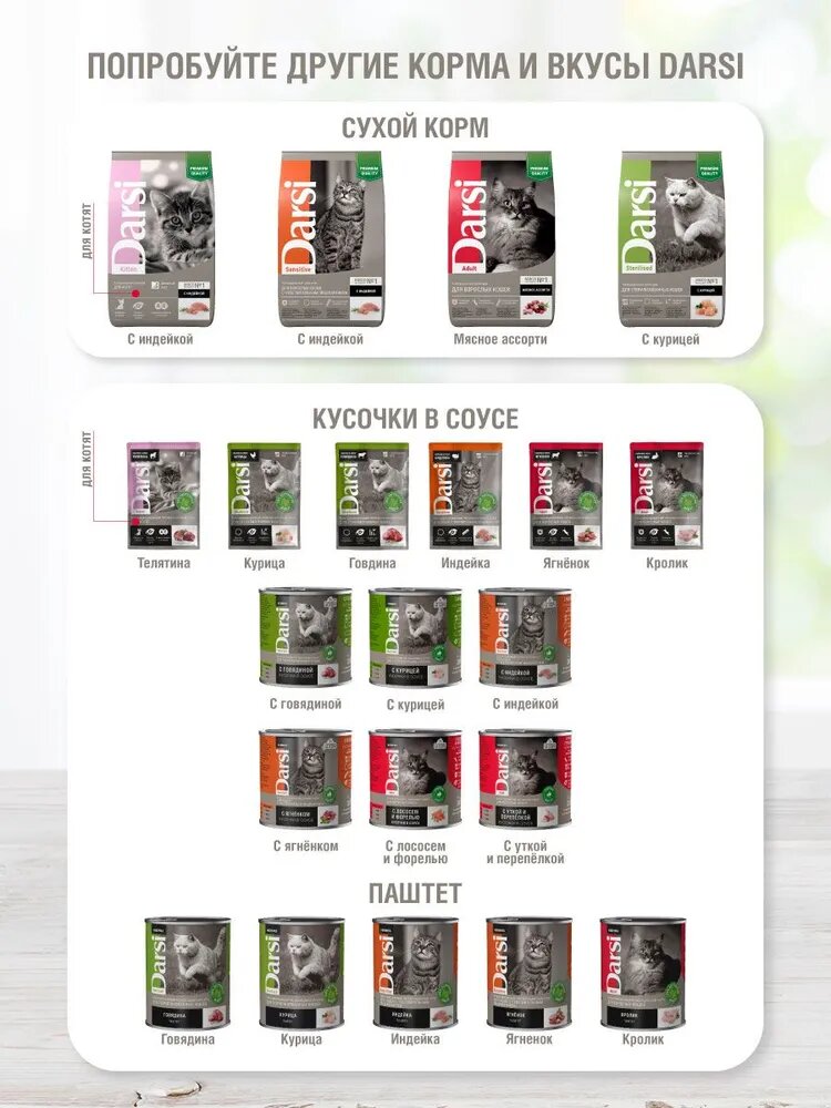 "Darsi" - влажный корм для стерилизованных кошек с курицей 340гр паштет интересное: