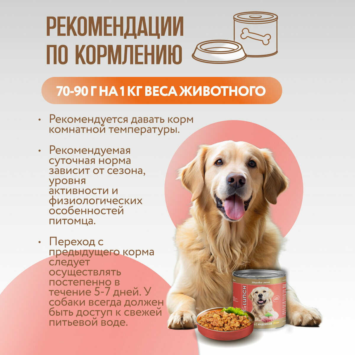 СохранитьКорм влажный DOG LUNCH говядина и индейка в соусе для собак (750г) интересное:
