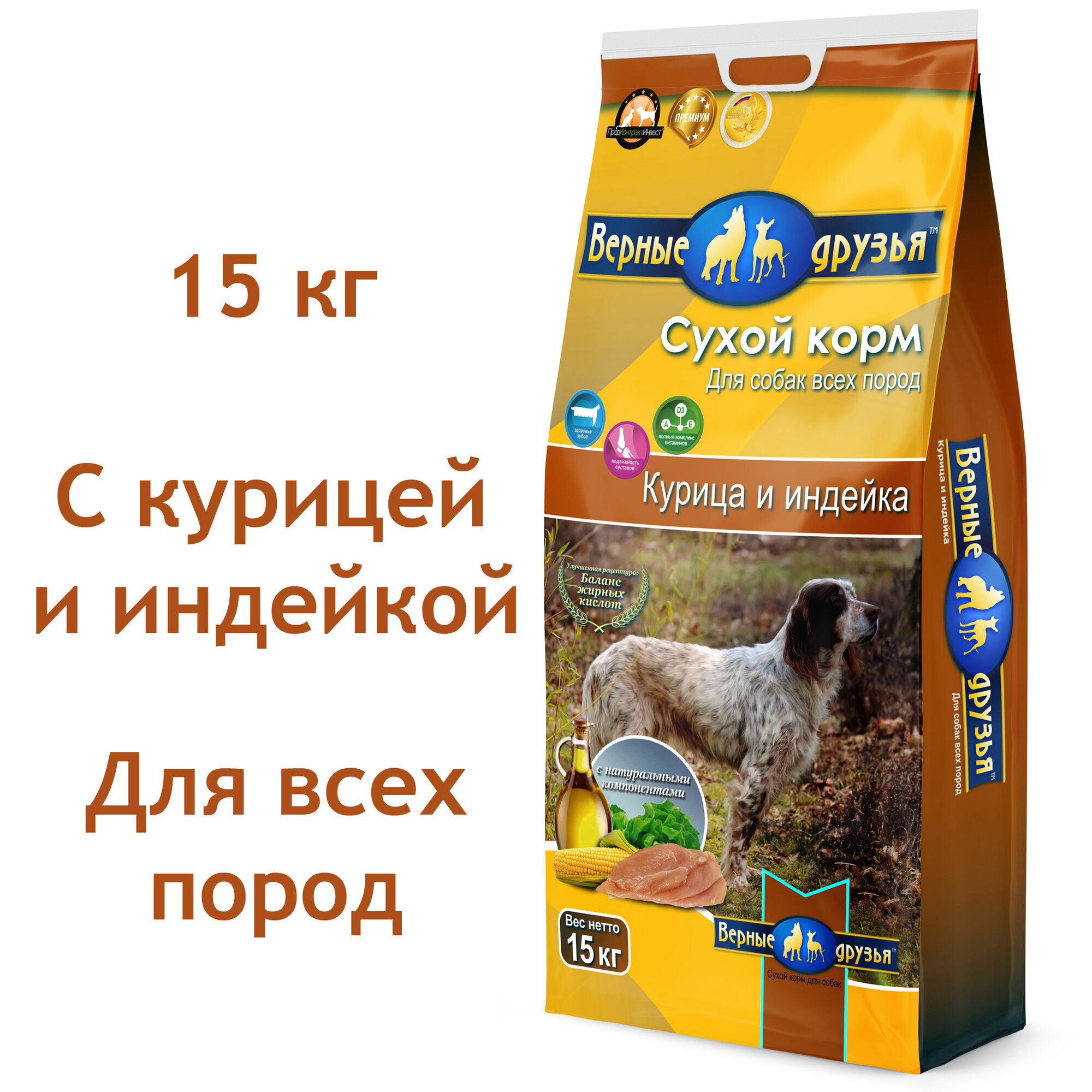 Купить Корм для собак сухой полнорационный "Верные друзья", с курицей и индейкой, 15 кг