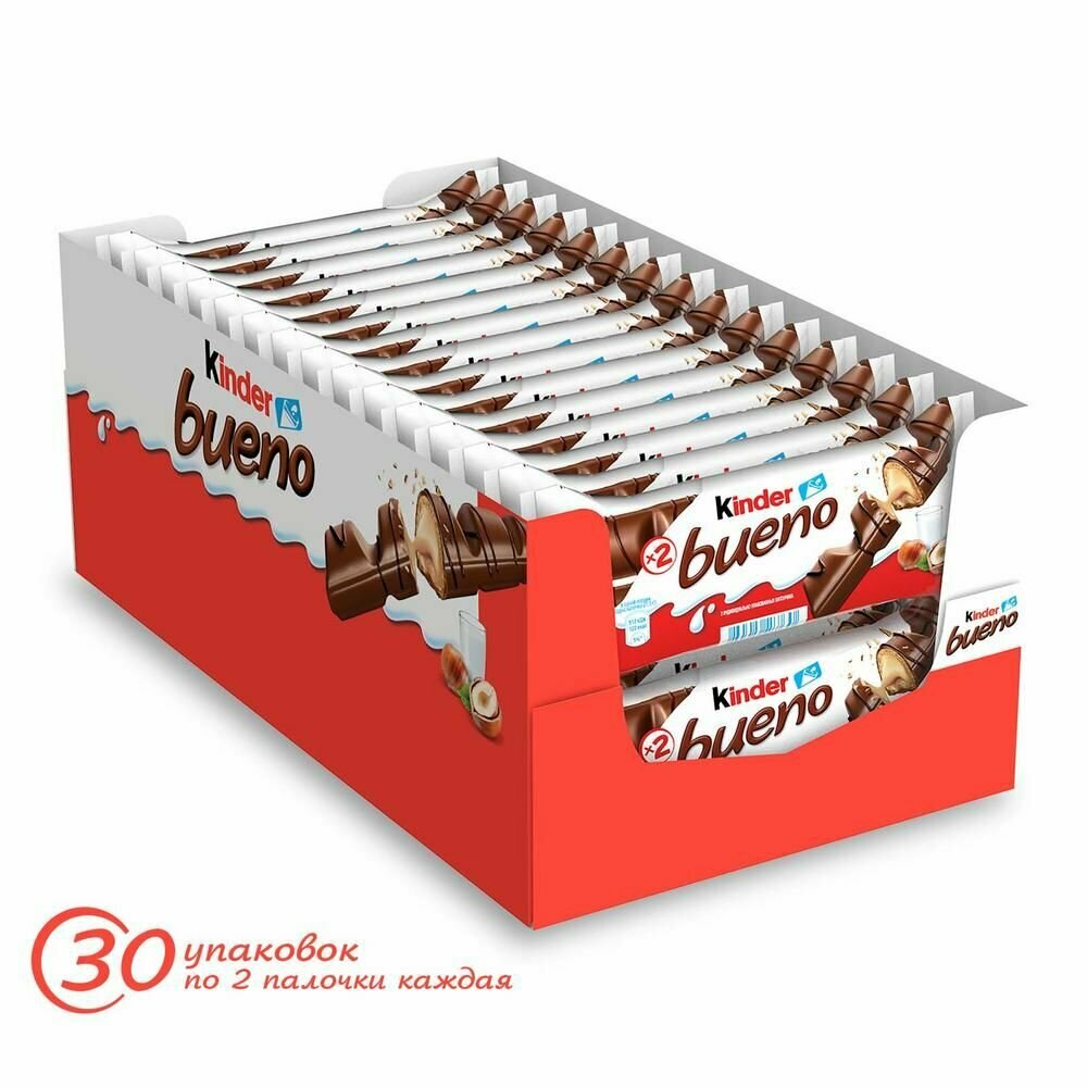 Купить Вафельный батончик Kinder Bueno в молочном шоколаде, 30 шт по 43 г