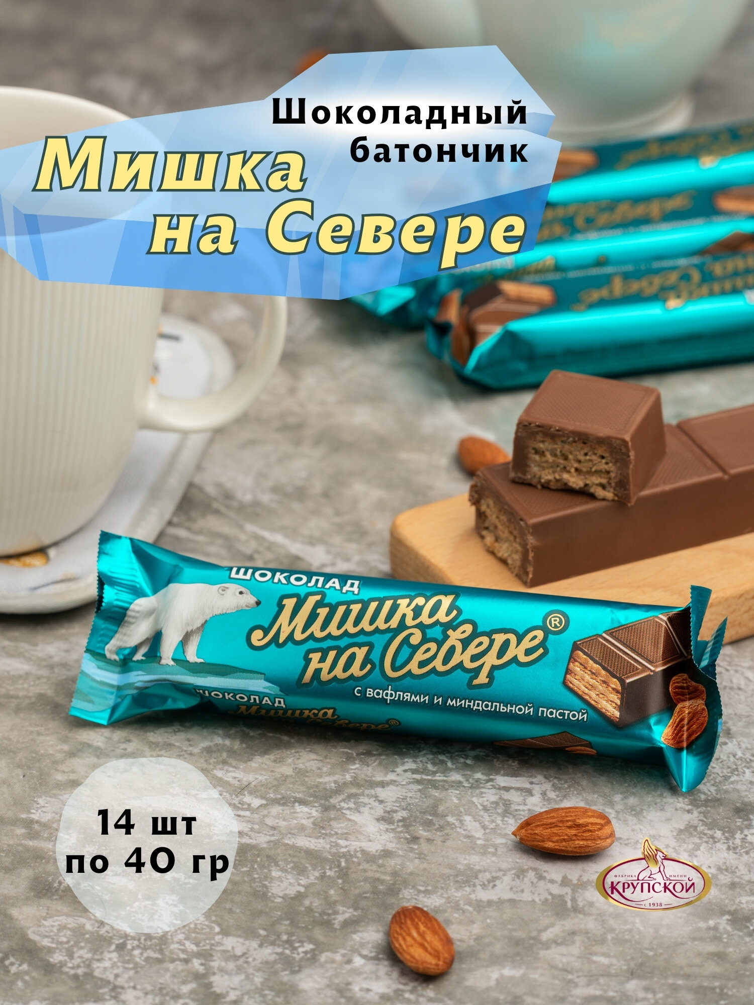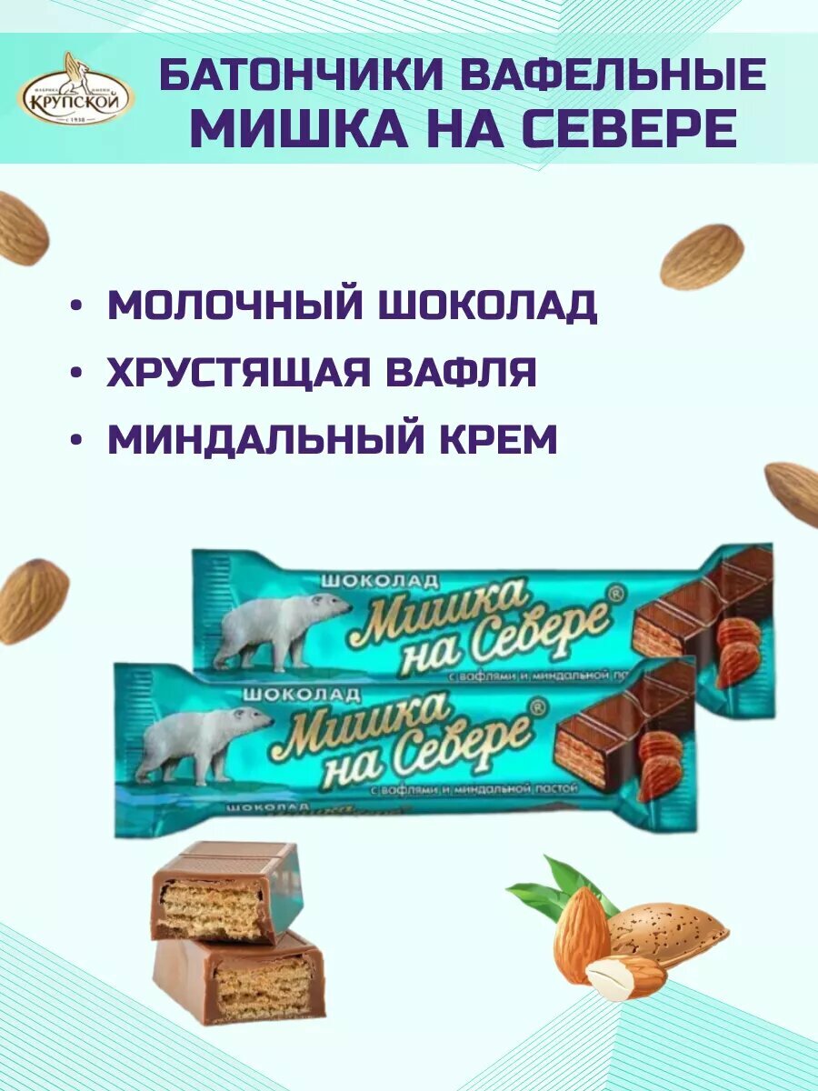 Шоколад батончик мишка на севере с вафлями и миндальной пастой ,14 шт по 40 гр, Крупская