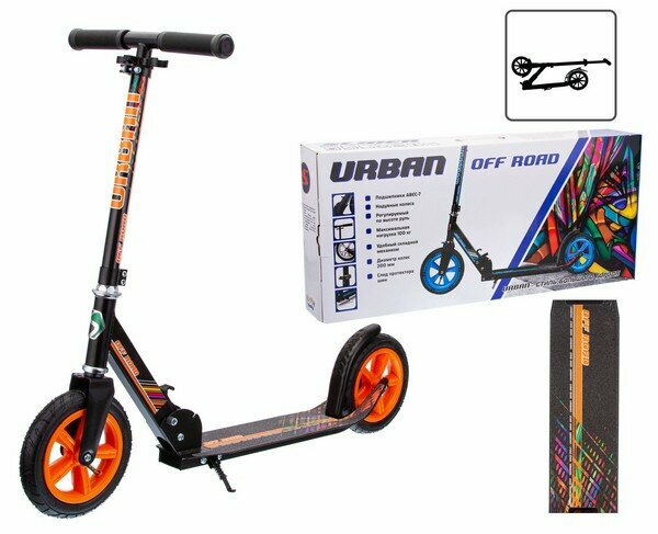 Самокат складной OFF ROAD URBAN колёса 200 мм регулируемая ручка, надувные колёса игротрейд SU3O Оранжевый