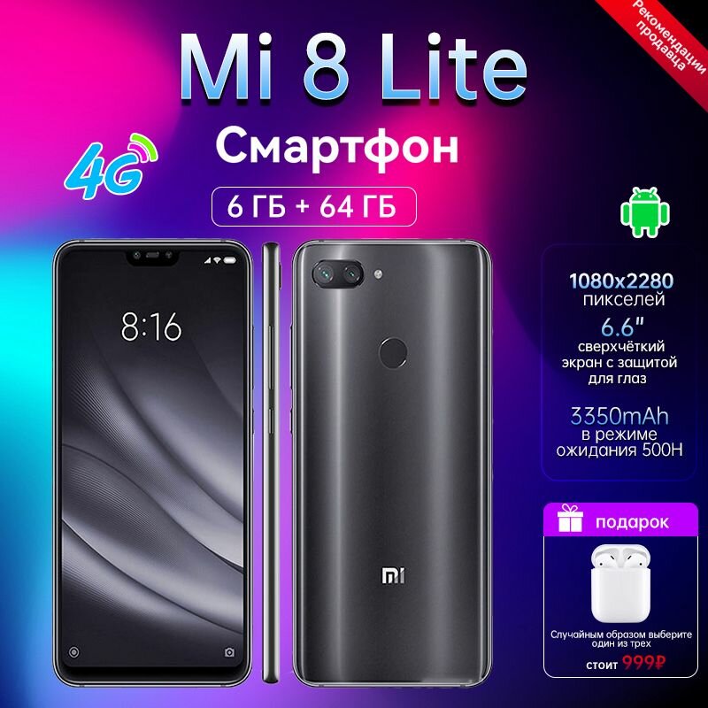 СохранитьСмартфон Xiaomi Mi 8 Lite 6/64 ГБ Global, Dual nano SIM, полночный черный интересное: