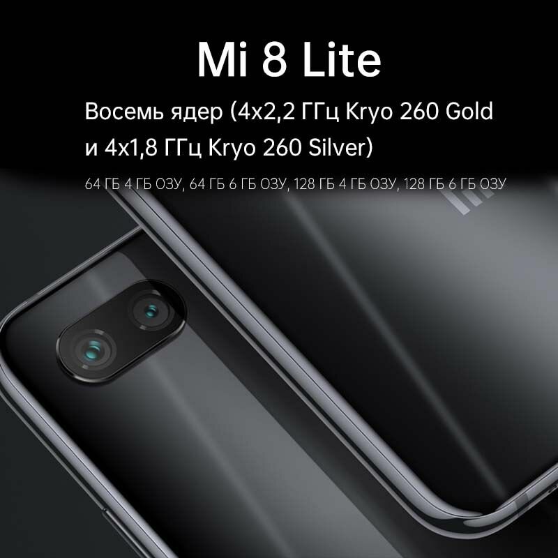 Купить Смартфон Xiaomi Mi 8 Lite 6/64 ГБ Global, Dual nano SIM, полночный черный