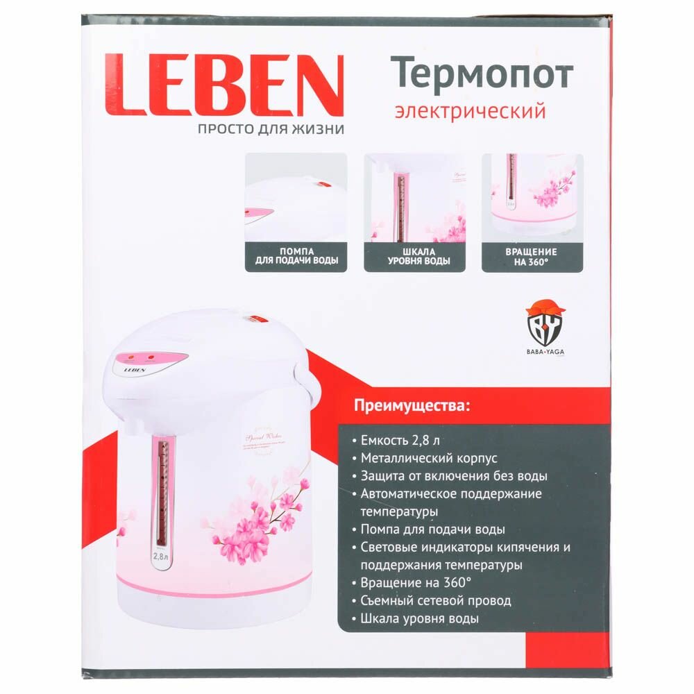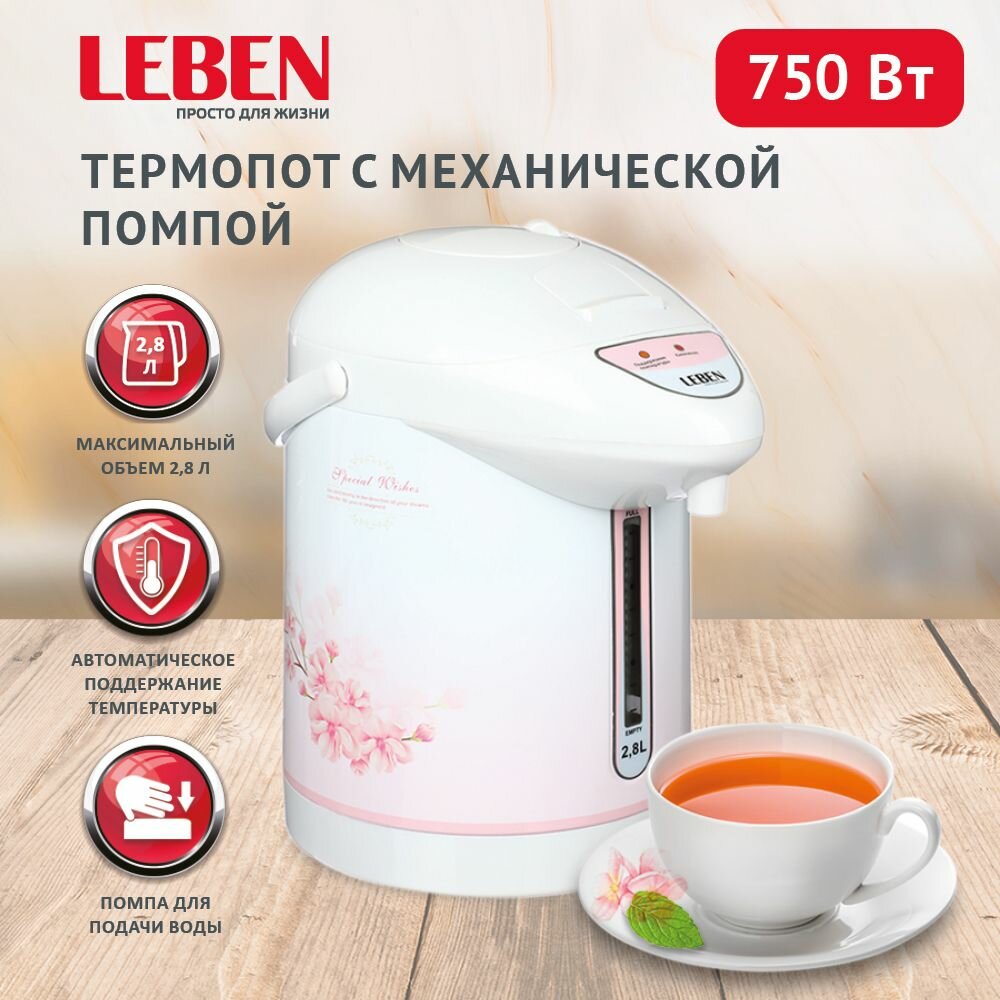 Купить Чайник-термопот LEBEN 2,8 л, 750 Вт, автоматическое поддержание температуры, механическая помпа