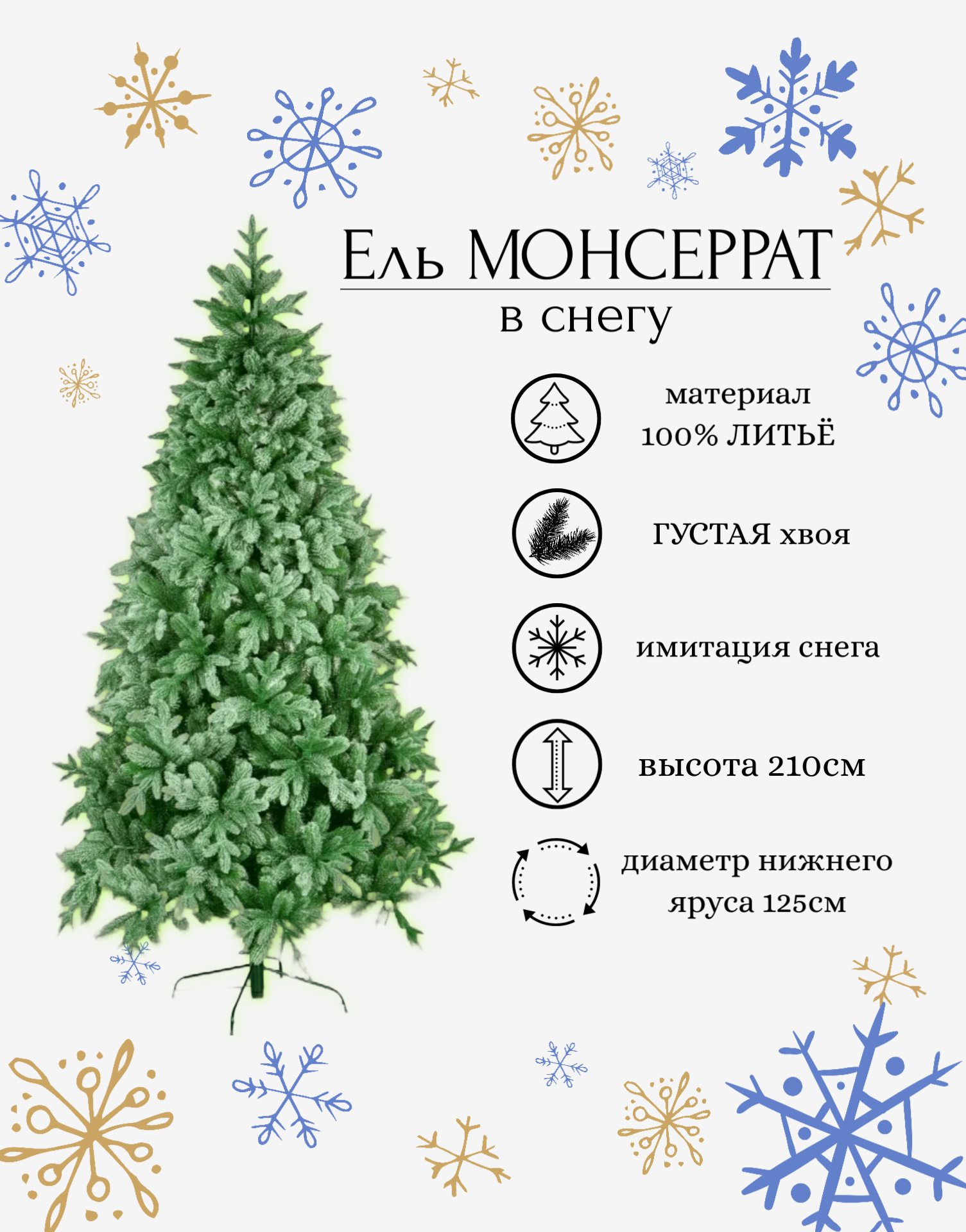 Ниже Вы можете прочитать отзывы на Ель монсеррат в снегу 210 см., ознакомится с подробными характеристиками, посмотреть интересные обзоры и фотографии на Ель монсеррат в снегу 210 см..