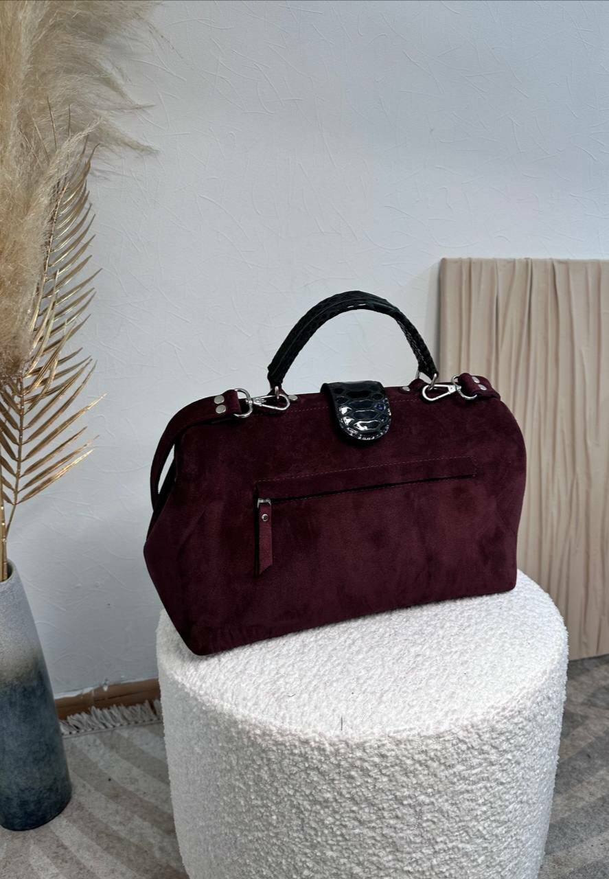 Саквояж из бордовой замши