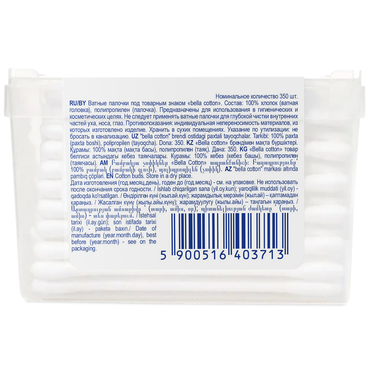 Купить Ватные палочки bella cotton из 100% хлопка в пластиковой коробочке, 350 шт.