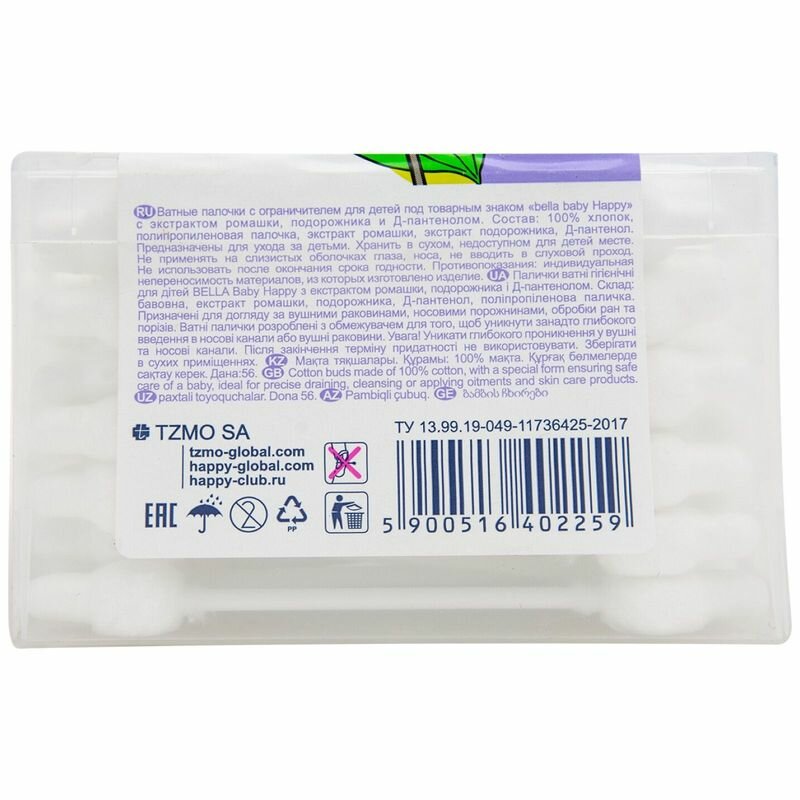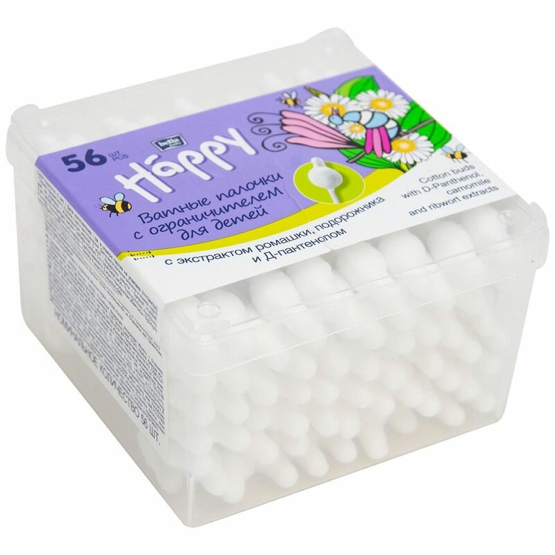 Купить Ватные палочки для детей (с ограничителем) bella baby Happy с экстрактом ромашки, подорожника и Д-пантенолом, 56 шт.