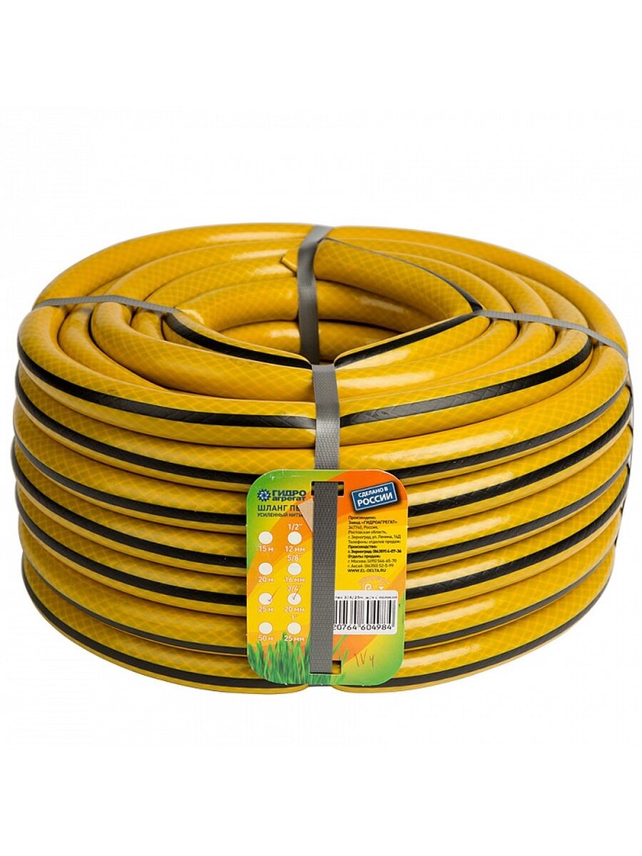 Купить Шланг поливочный Гидроагрегат, диаметр 20 мм, длина в бухте 25 м, желтый с чёрной полосой