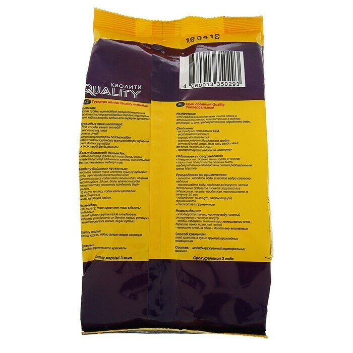 Клей обойный Quality, универсальный, мягкая упаковка, 200 г Quality 3562827 .