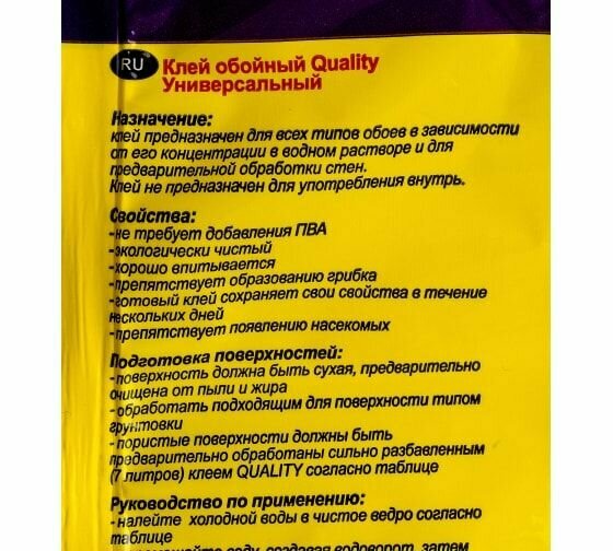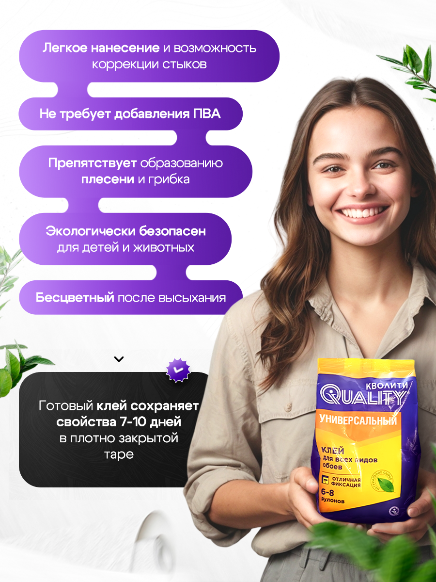 Купить Клей для обоев Quality "Универсальный" 200 г (пакет), для всех типов обоев