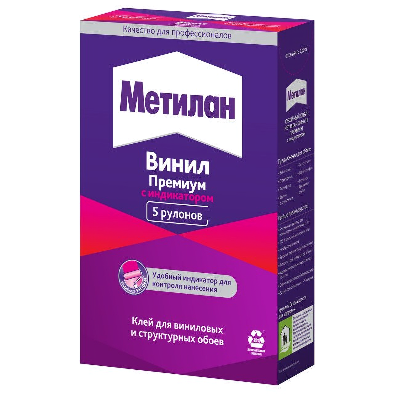 Метилан Винил Премиум с индикатором клей обойный (500г) / METYLAN Винил Премиум с индикатором клей для виниловых обоев (0,5кг)