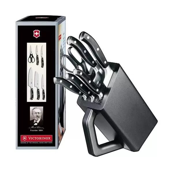 Набор VICTORINOX из 6 кованых кухонных предметов: 5 ножей и ножницы, в подставке из бука 7.7243.6