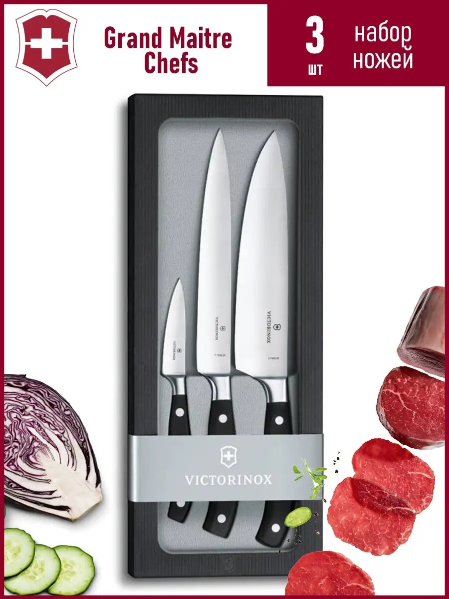 Купить Набор ножей кухон. Victorinox Grand Maitre Chefs (7.7243.3) компл.:3предм. черный подар.коробка