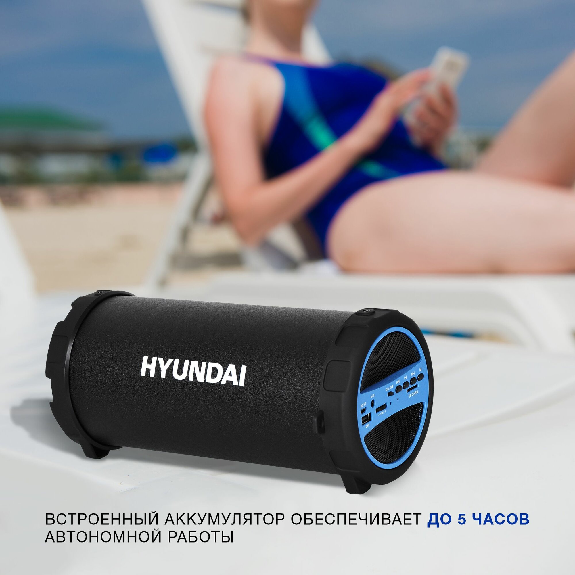 Купить Колонка портативная Hyundai H-PAC220 черный/голубой, 10W 1.0 BT/3.5Jack/USB