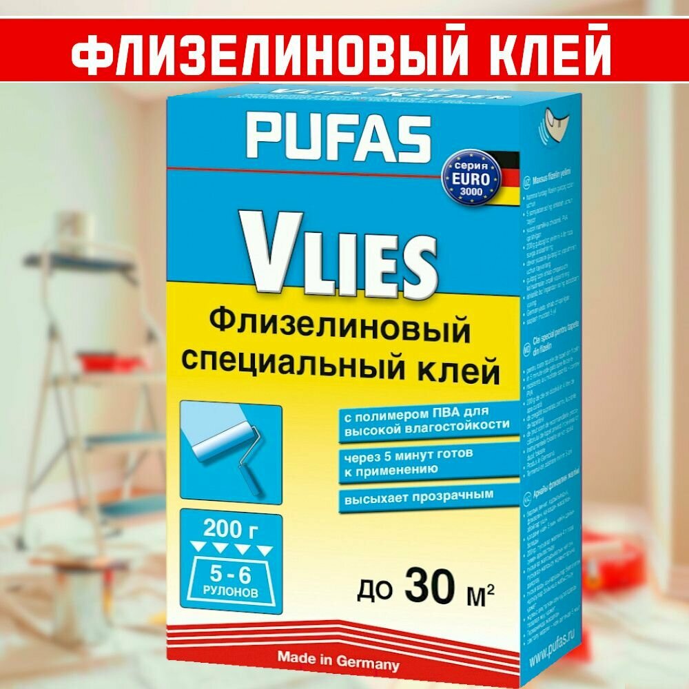 Клей для обоев специальный флизелиновый, Pufas Euro 3000 Vlies Kleber,200 г., для обоев на флизелиновой и бумажной основе. Производство Германия Пуфас