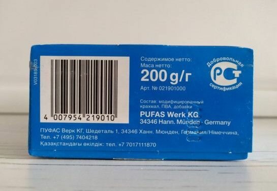 Пуфас 522 клей для флизелиновых обоев (0,2кг) / PUFAS N0522 Vlies Kleber Euro 3000 клей обойный флизелиновый (200г)