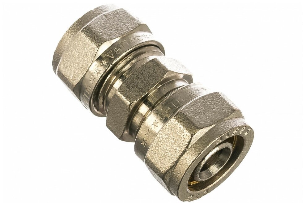 Фитинг обжимной 20 мм прямой для металлопластиковых труб 20x2,0 мм VALTEC VTm.303.N.002020 / Равнопроходное соединение латунное под обжим DN20