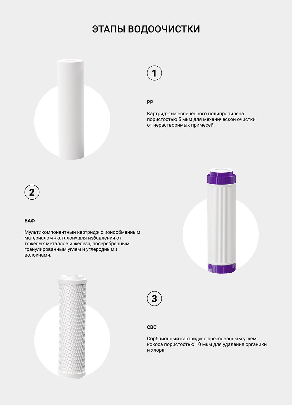 | Отзыв: | Полный комплект: 3 картриджа(фильтра) + мембрана + постфильтр. |