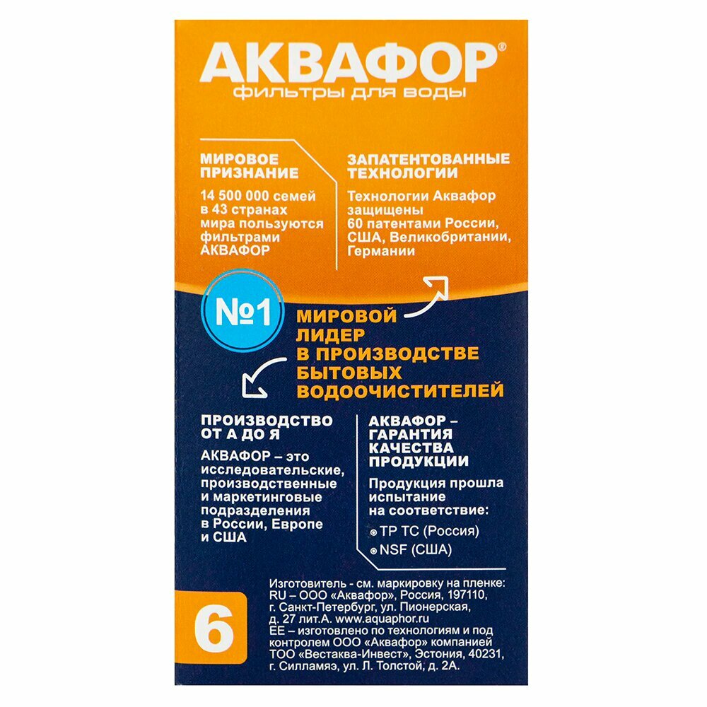 Аквафор В6 (B100-6) cменный картридж для фильтра-кувшина , 4 шт.