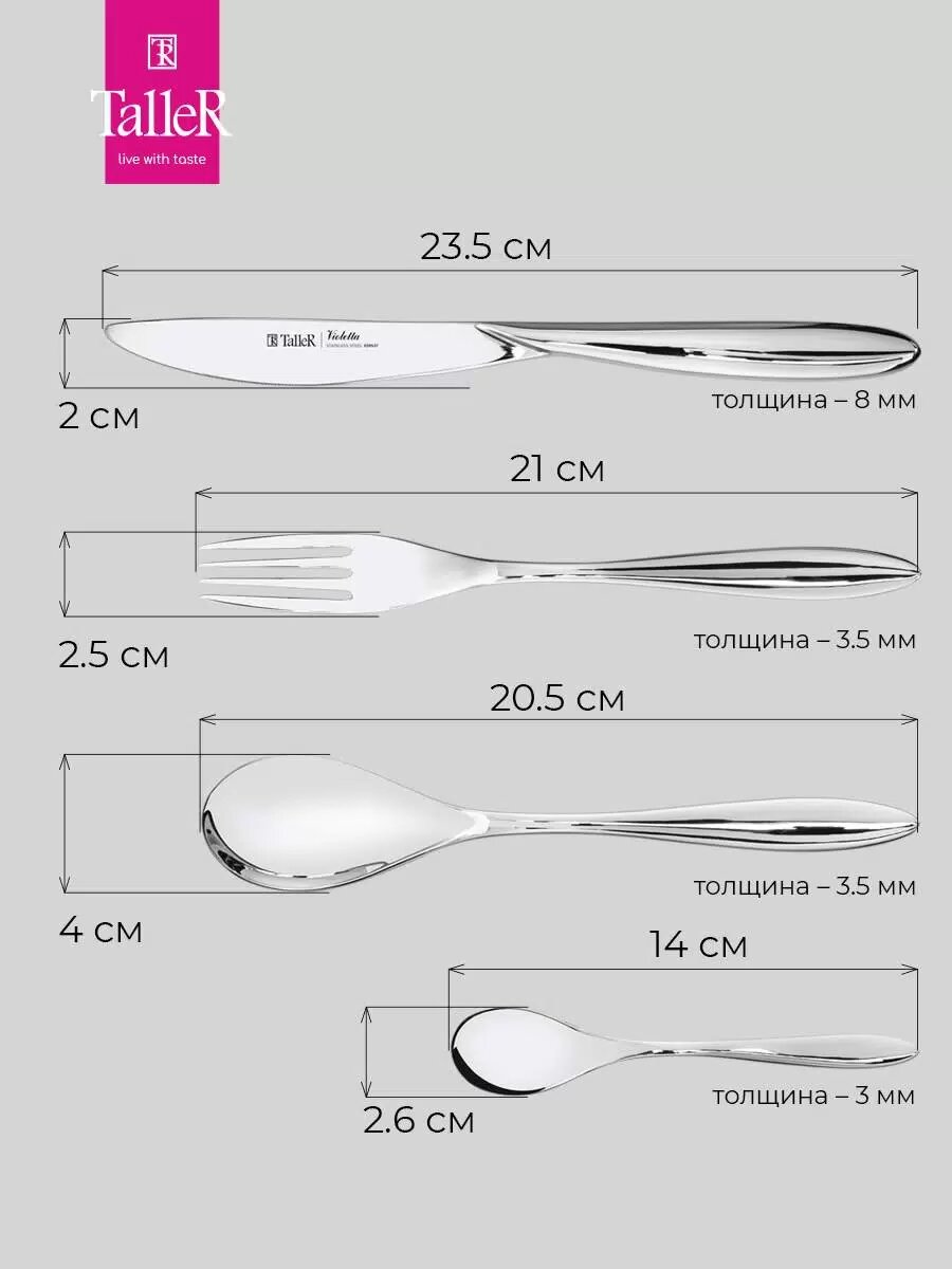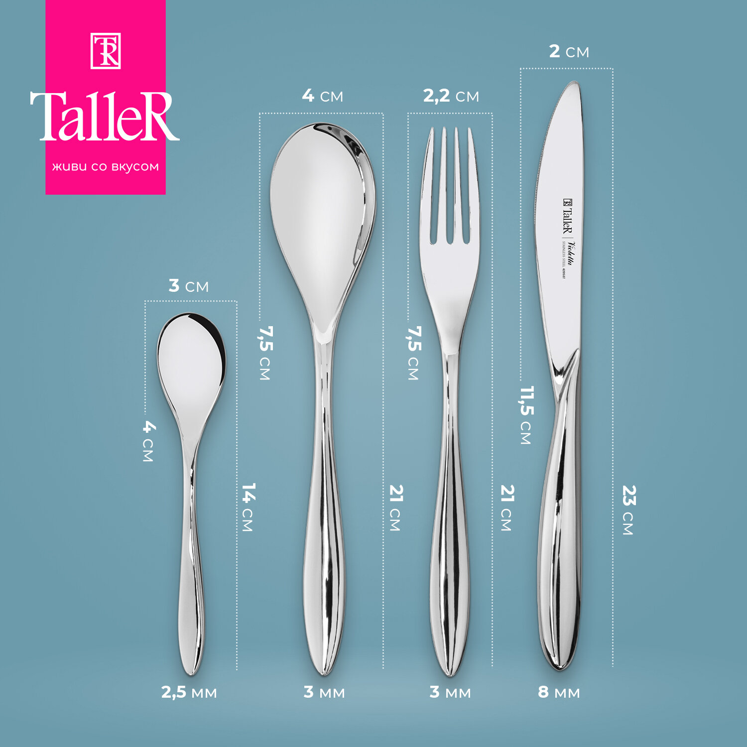 Набор столовых приборов нержавеющая сталь, 24 предмета, металлик, столовый, подарочная упаковка, Taller, TR-21605