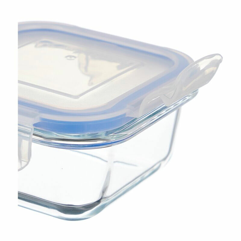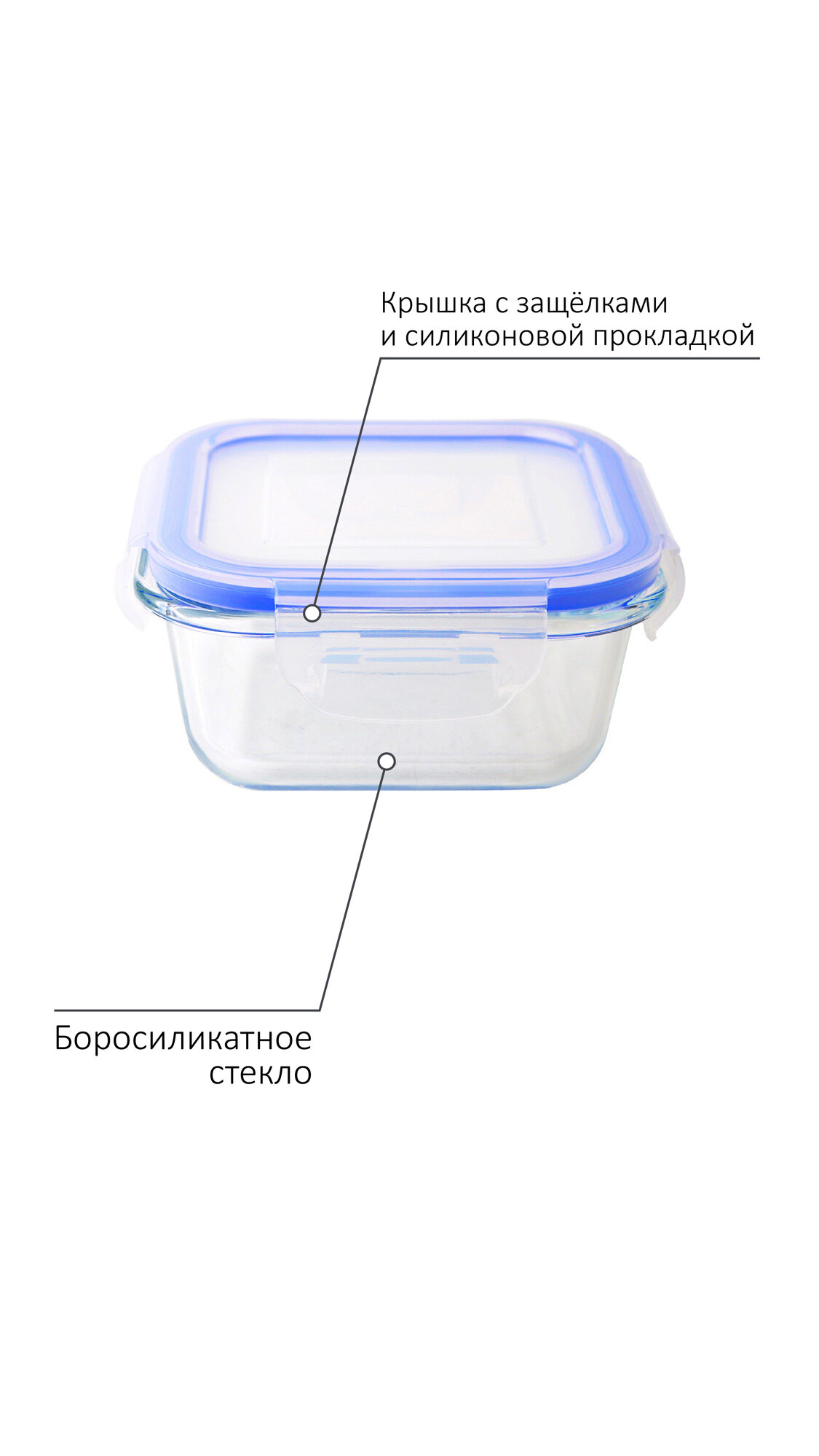 Контейнер стеклянный для пищевых продуктов с крышкой на защелках из пластика объем 0.5 л Размер: 13,7х13,7х6,4 см