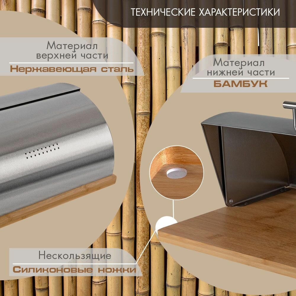 Хлебница Endever "Bamboo-03", бамбук и металл, 39х31,5х16 см интересное: