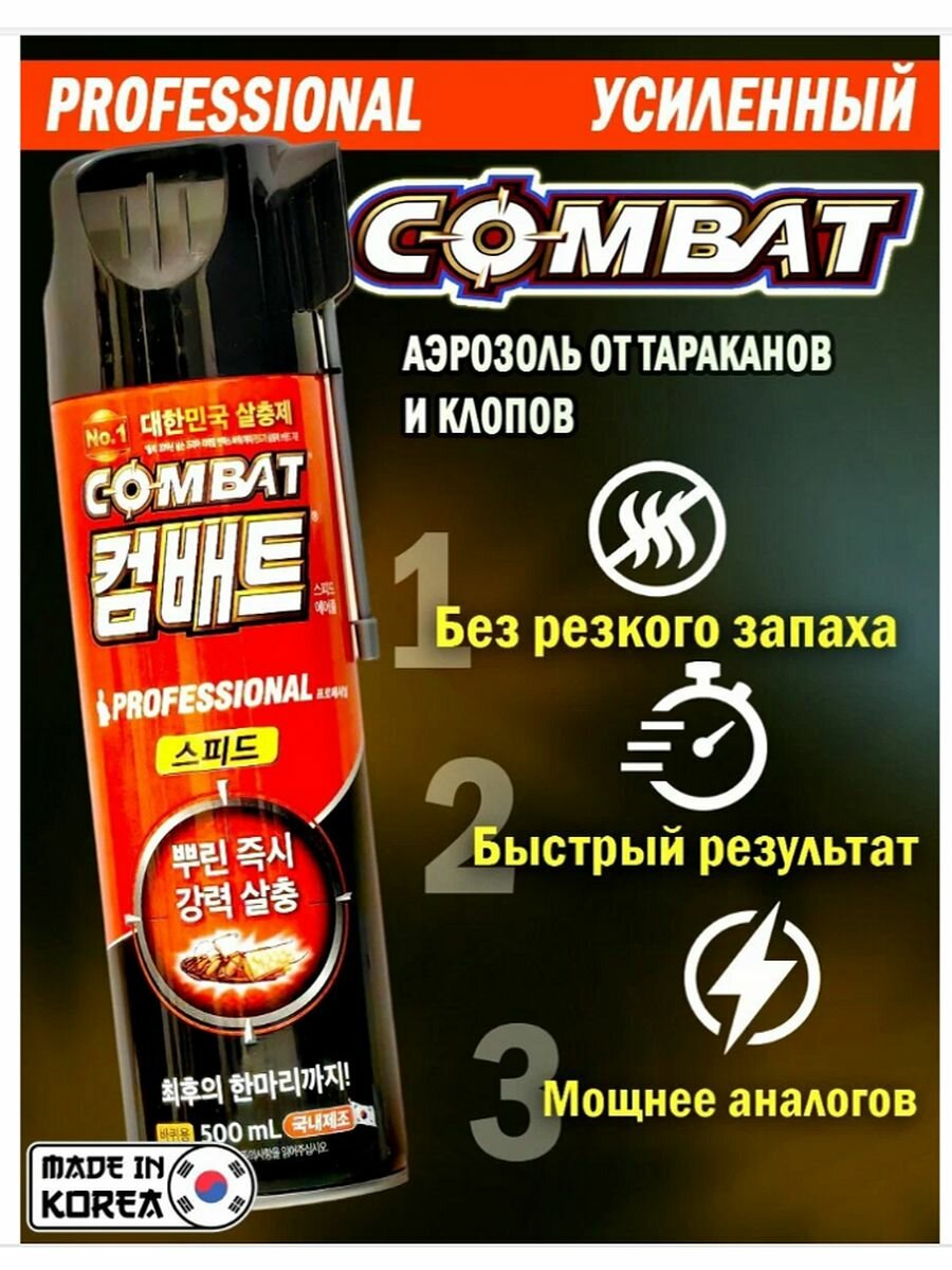 Cambat Аэрозоль Combat Super Spray Китайский убийца от клопов, тараканов, блох, муравьев, моли, кожеедов, пауков, 500 мл (3 шт)