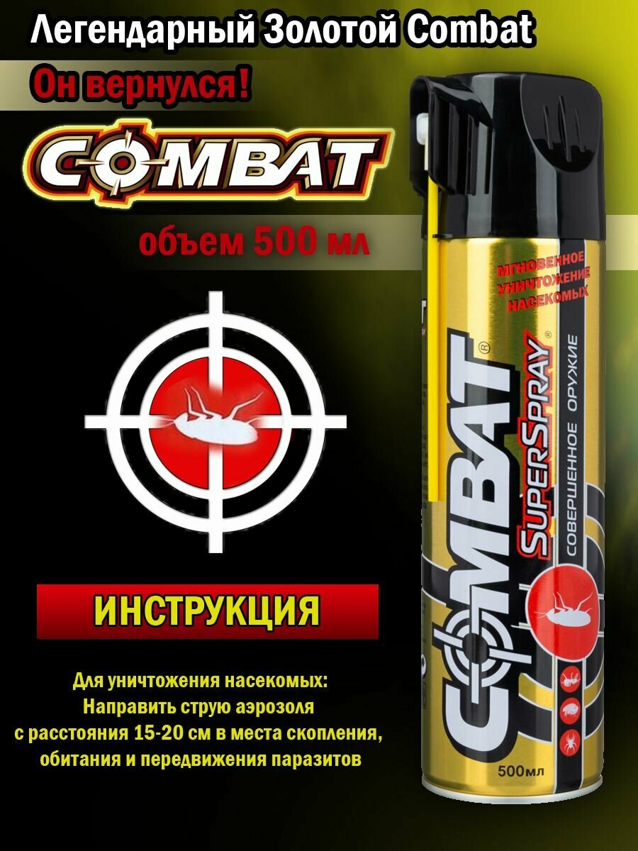 Аэрозоль от всех насекомых "Combat Super Spray" (Золотой), 500 мл - 2 баллона