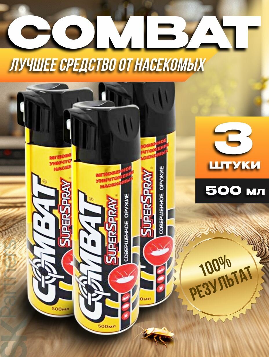 Купить Cambat Аэрозоль Combat Super Spray Китайский убийца от клопов, тараканов, блох, муравьев, моли, кожеедов, пауков, 500 мл (3 шт)