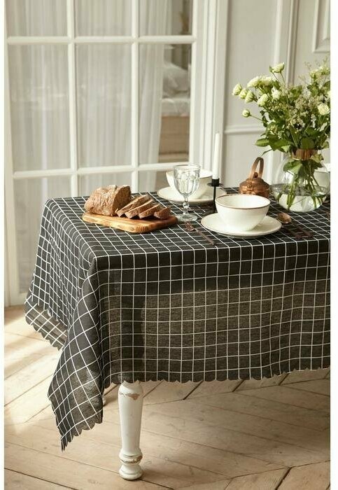 Купить Скатерть «Доляна» "Клетка", цв.черный, 145х200±3см,100%пэ, рогожка 130 гр/м