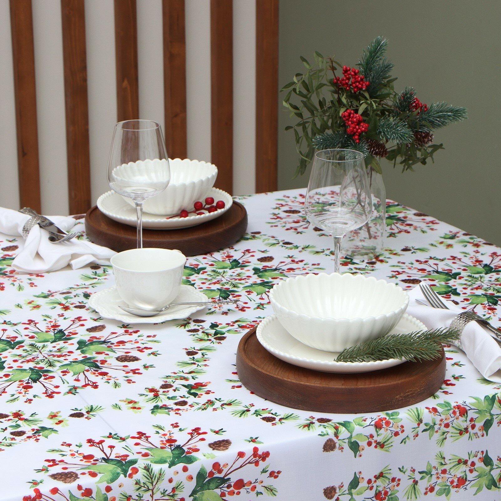 Скатерть «Доляна» "Хвойный узор", 110*145 см, 100% п/э