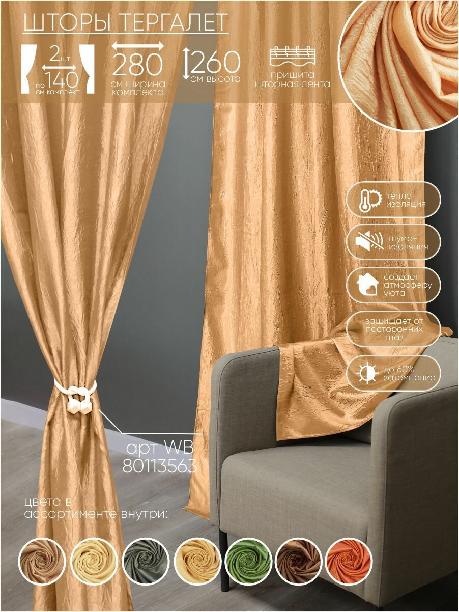 Шторы Witerra "Тергалет", 140x260см, непрозрачные, на ленте