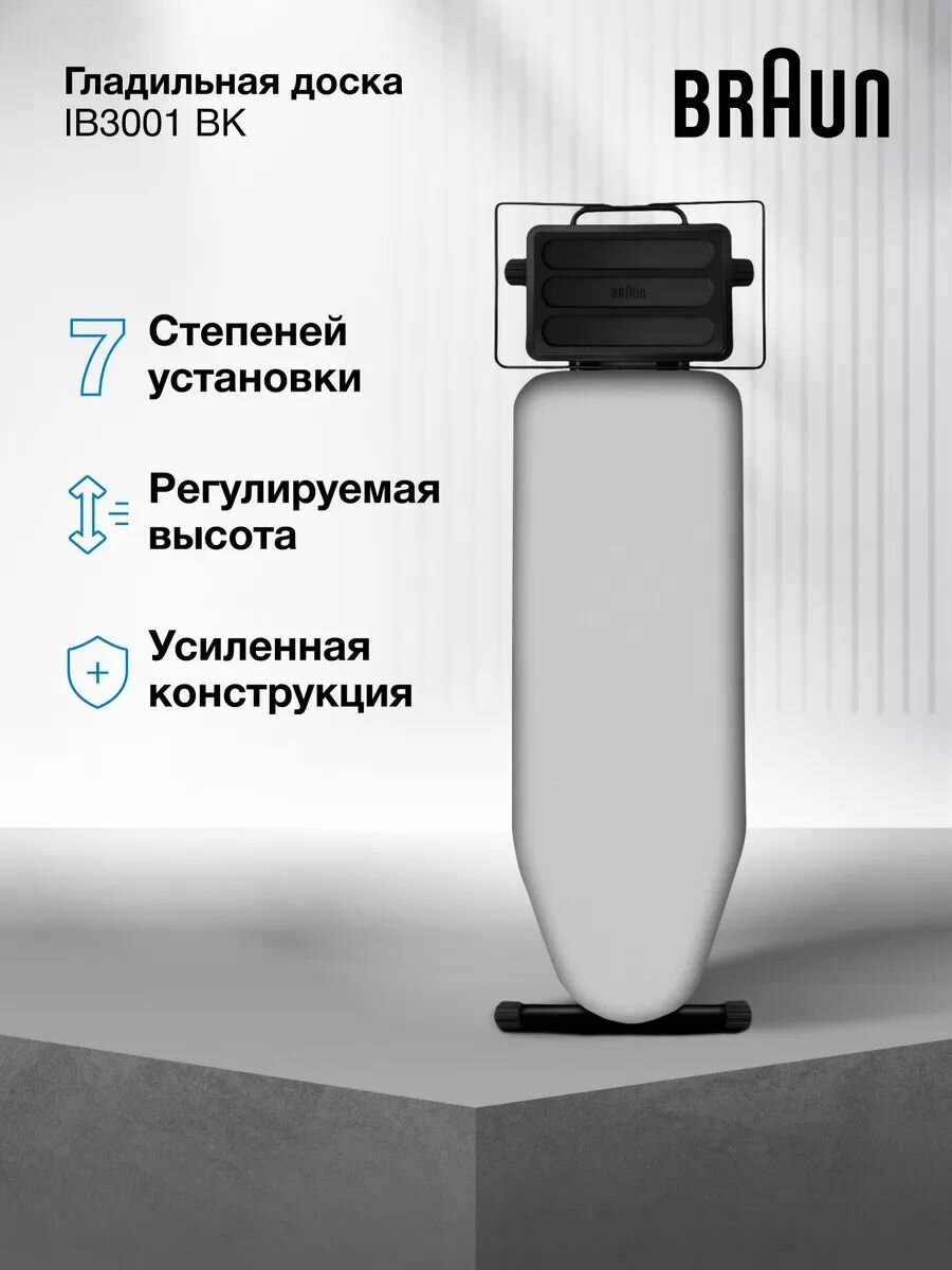 Гладильная доска Braun IB3001 BK, 122х40 см, серый/черный интересное: