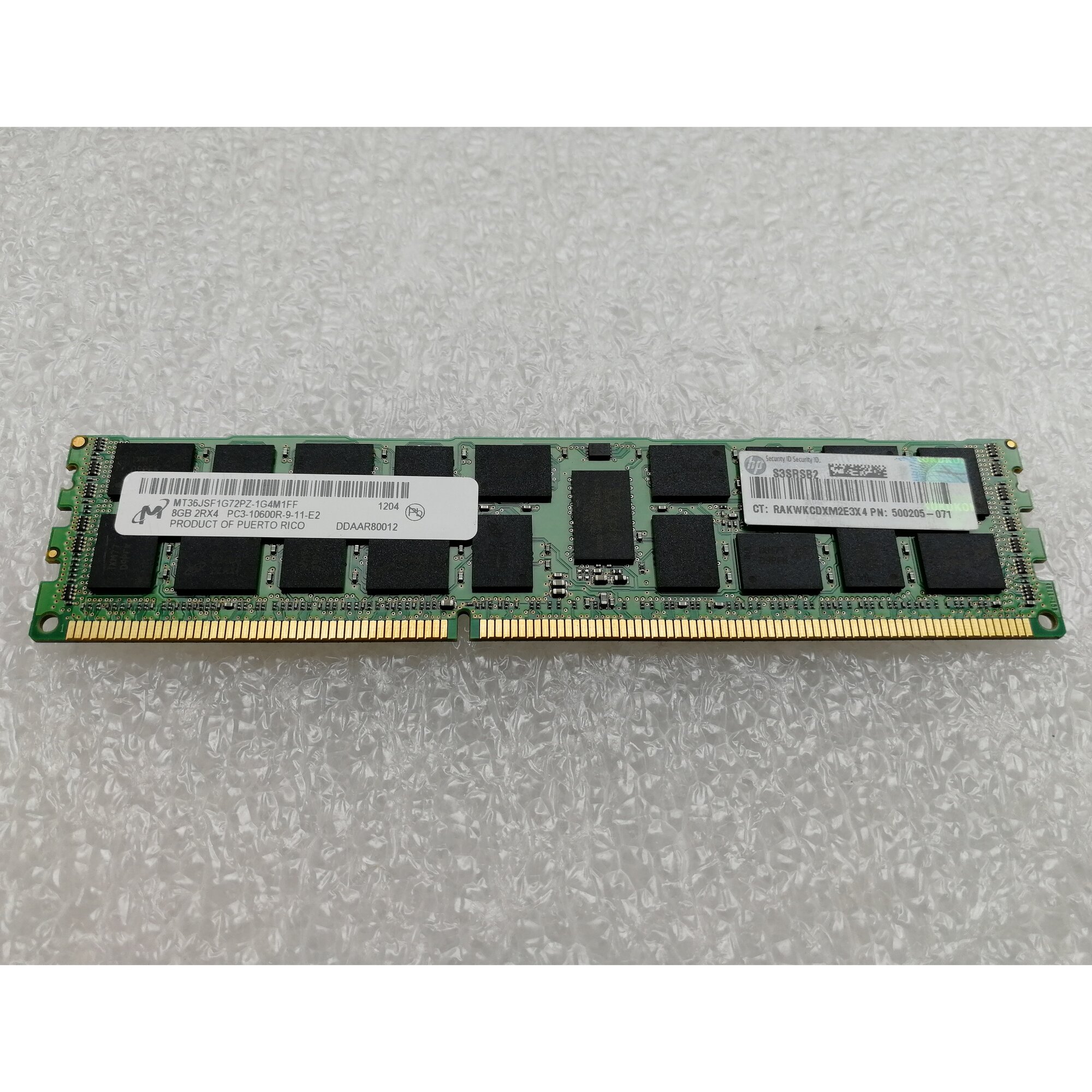 Оперативная память HP 8Gb 2Rx4 PC3-10600R DDR3-1333 ECC CL9 , 500205-071 , 501536-001 (500662-B21)
