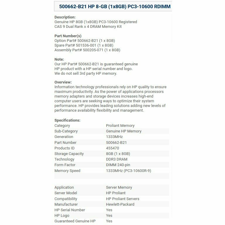 Ниже Вы можете прочитать отзывы на Оперативная память HP 8Gb 2Rx4 REG ECC PC3-10600R-9 [500662-B21], ознакомится с подробными характеристиками, посмотреть интересные обзоры и фотографии на Оперативная память HP 8Gb 2Rx4 REG ECC PC3-10600R-9 [500662-B21].