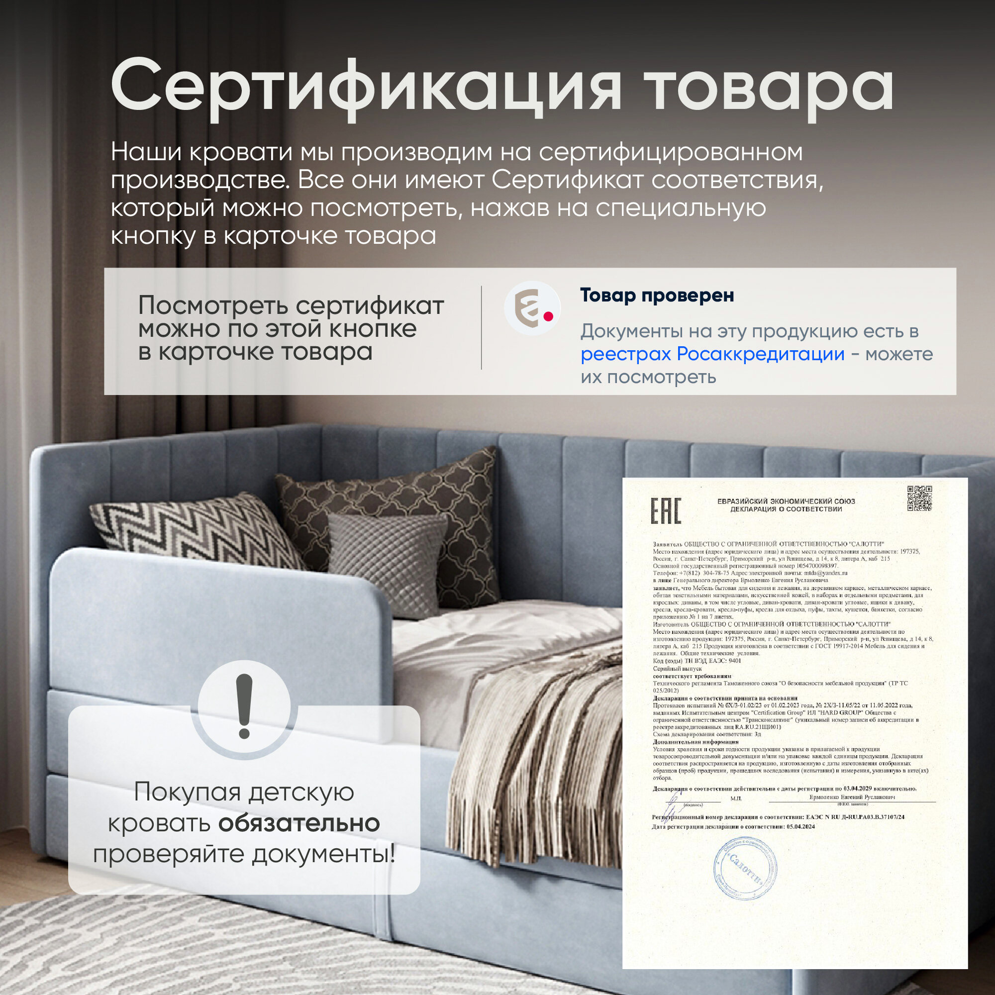 Кровать детская с матрасом Huggy, кровать односпальная с защитным бортиком и выкатным ящиком 160х80 см, цвет Серый, диван кровать с мягким изголовьем