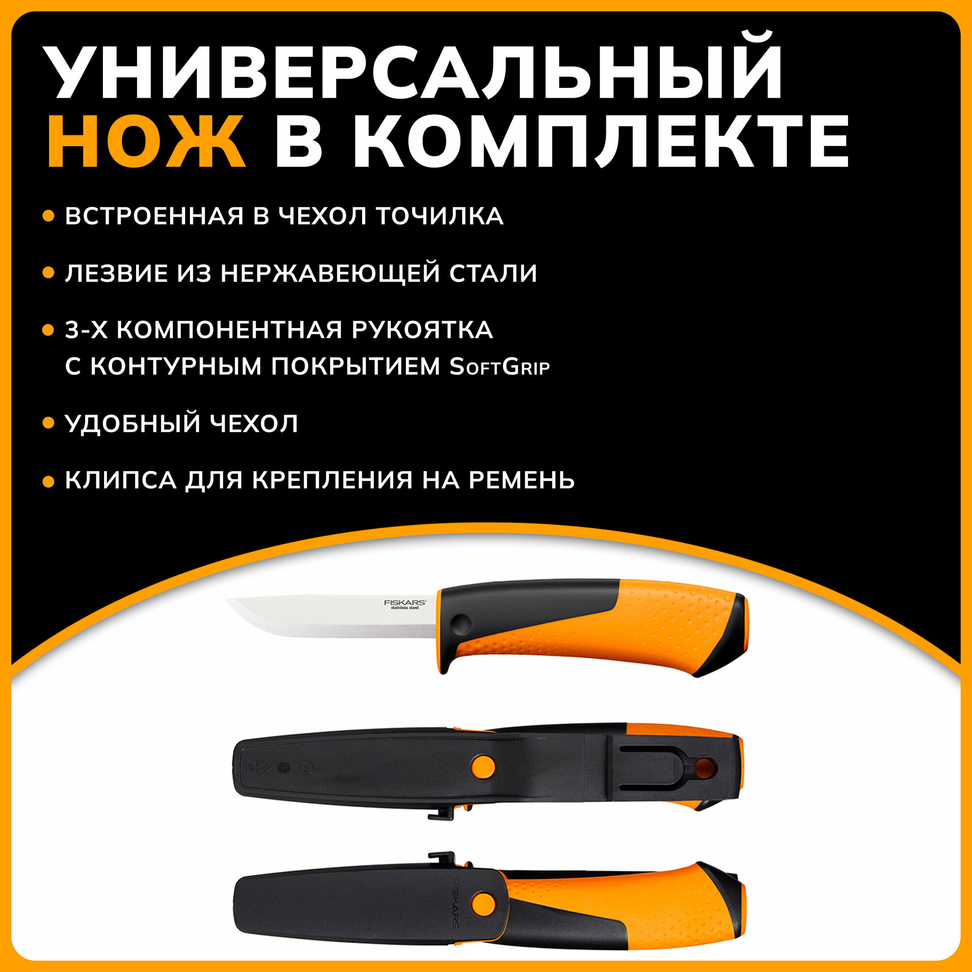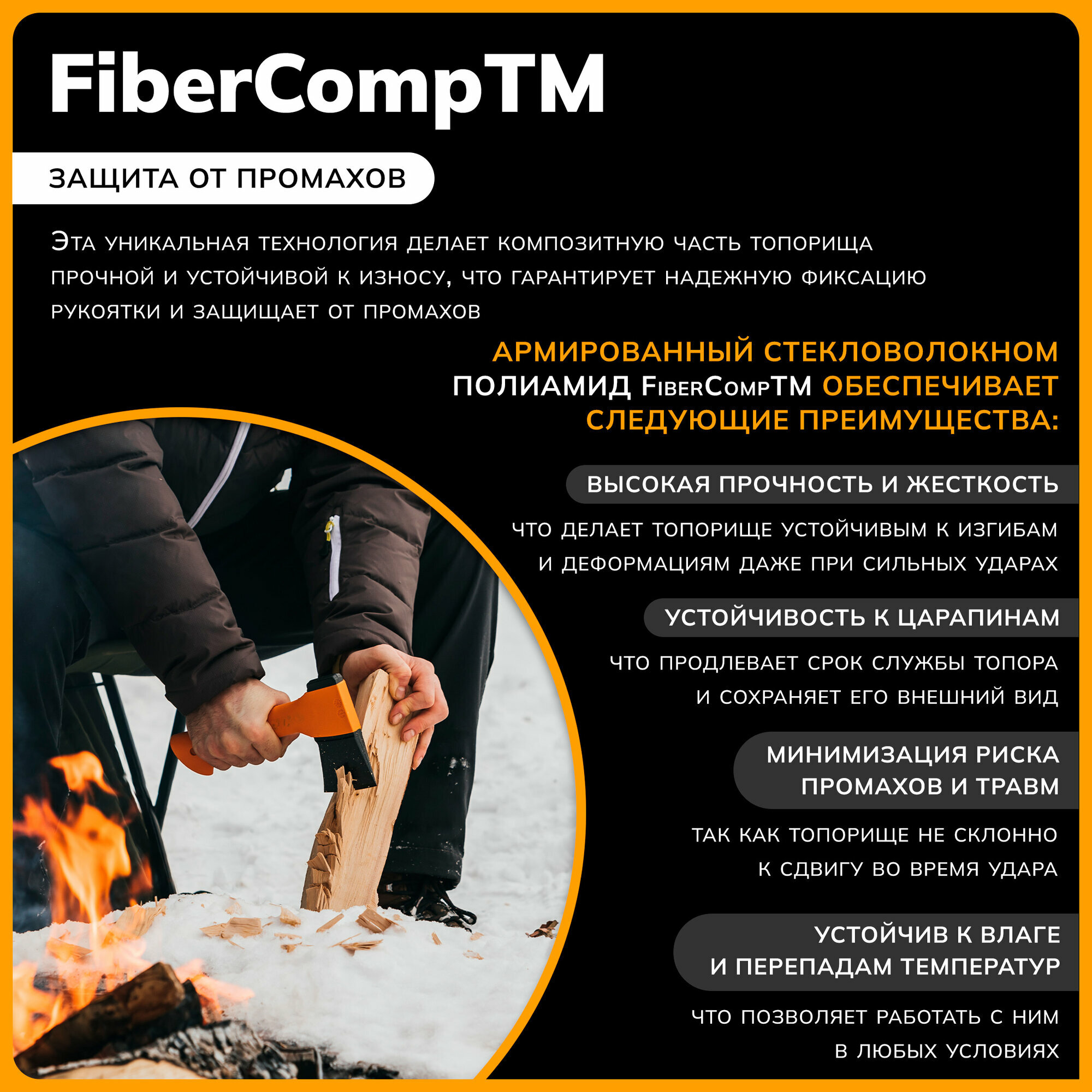 Топор универсальный FISKARS X10-S черный/оранжевый(1015619)