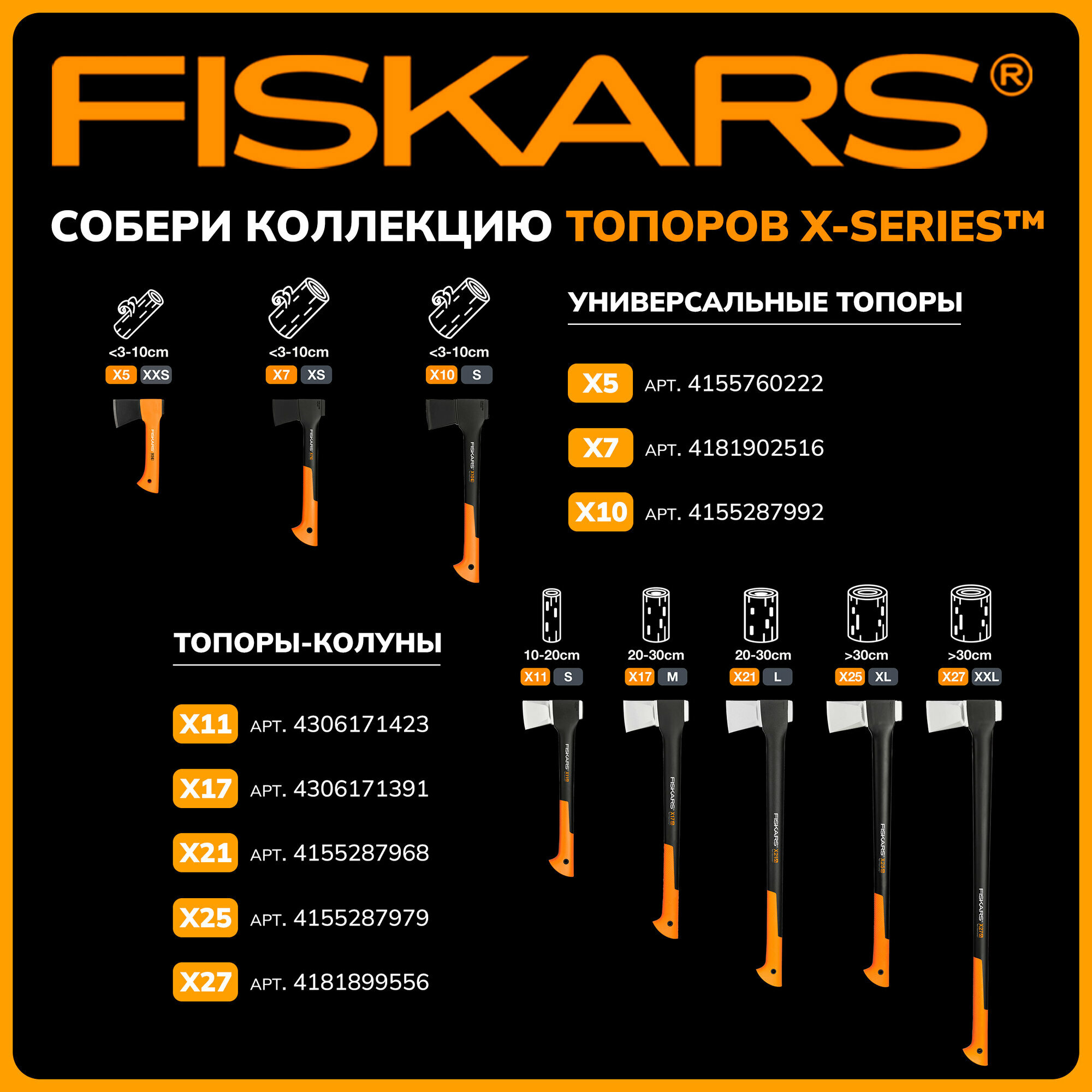 Колун FISKARS X10-S черный/оранжевый