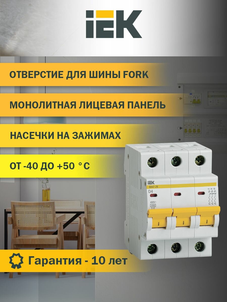 Выключатель автоматический модульный 3п D 4А 4.5кА ВА47-29 IEK MVA20-3-004-D (1 шт)