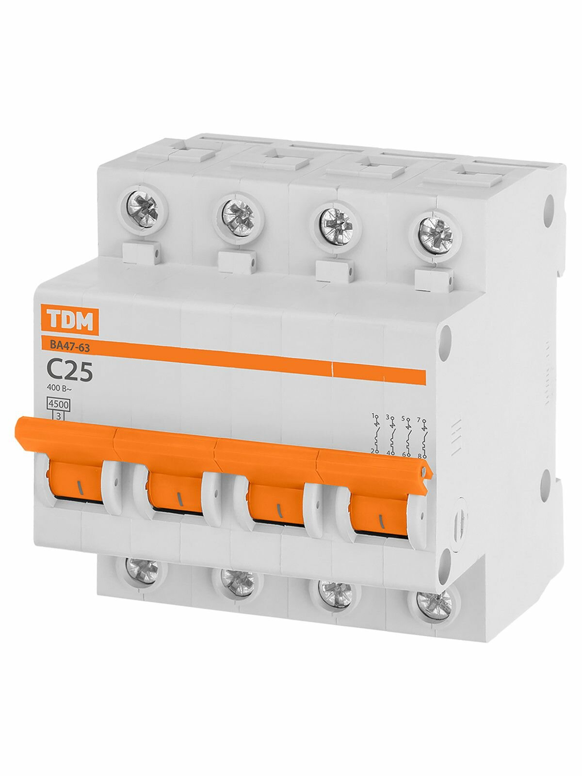 Купить Выключатель автоматический ВА47-63 4Р 25А 4,5кА х-ка С TDM