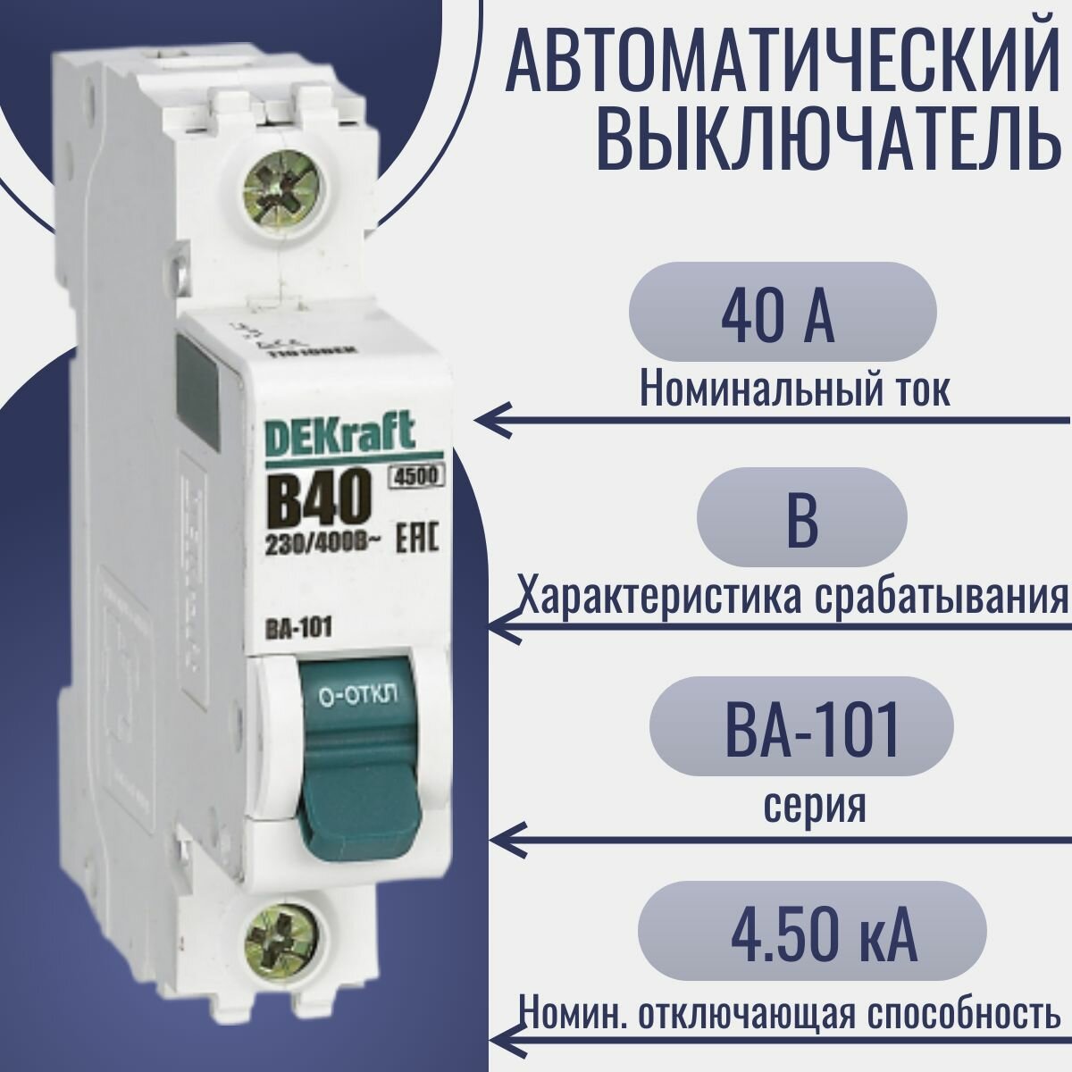 Купить Автоматический выключатель DEKraft ВА-101 40А 1п 4.5кА, B , 11010DEK