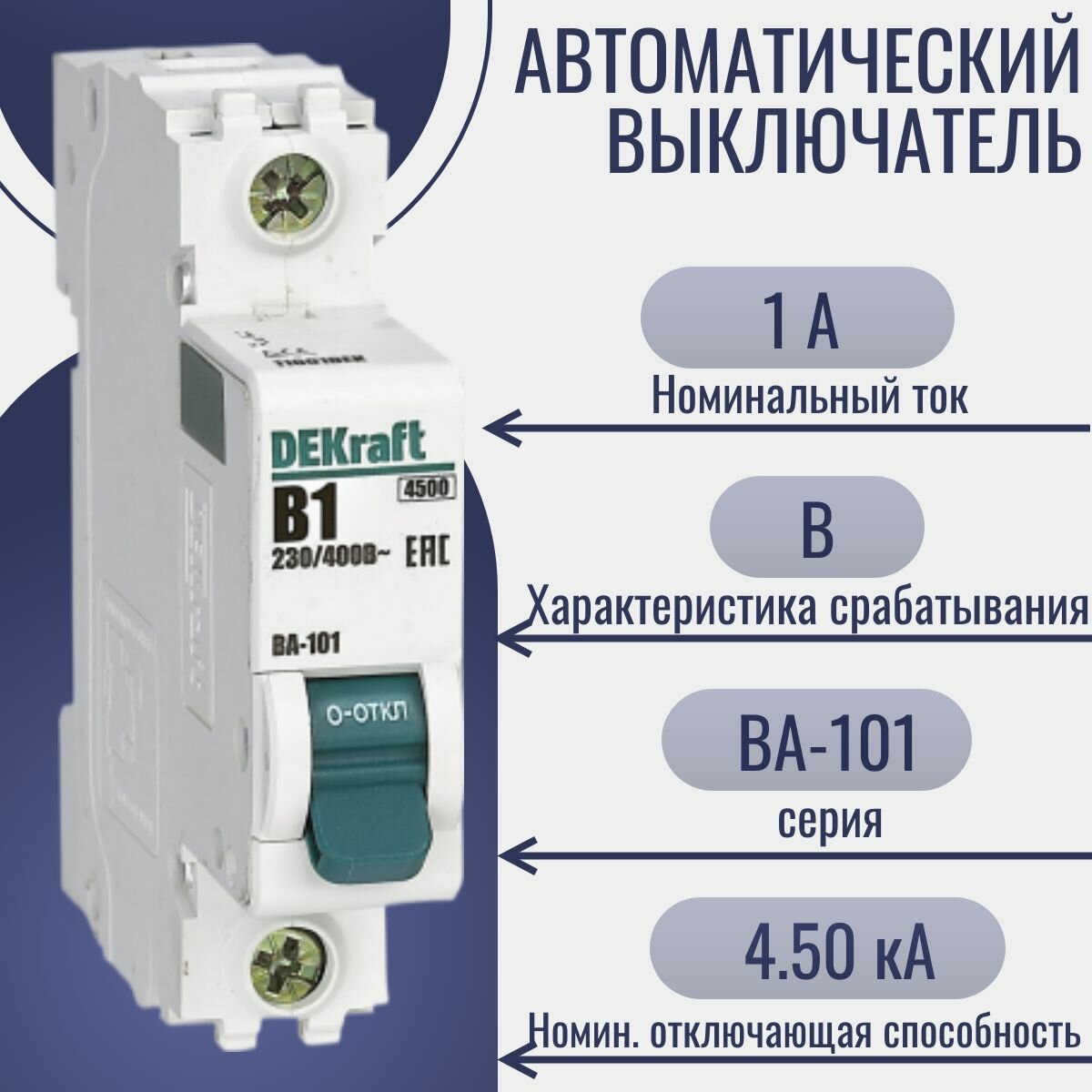 Автоматический выключатель DEKraft ВА-101 1P 1А (B) 4.5кА, 11001DEK