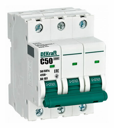 Выключатель автоматический DEKraft ВА-103, 3Р, 50 А, 6 кА, тип С