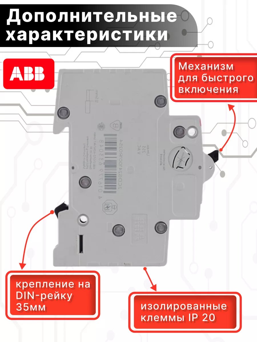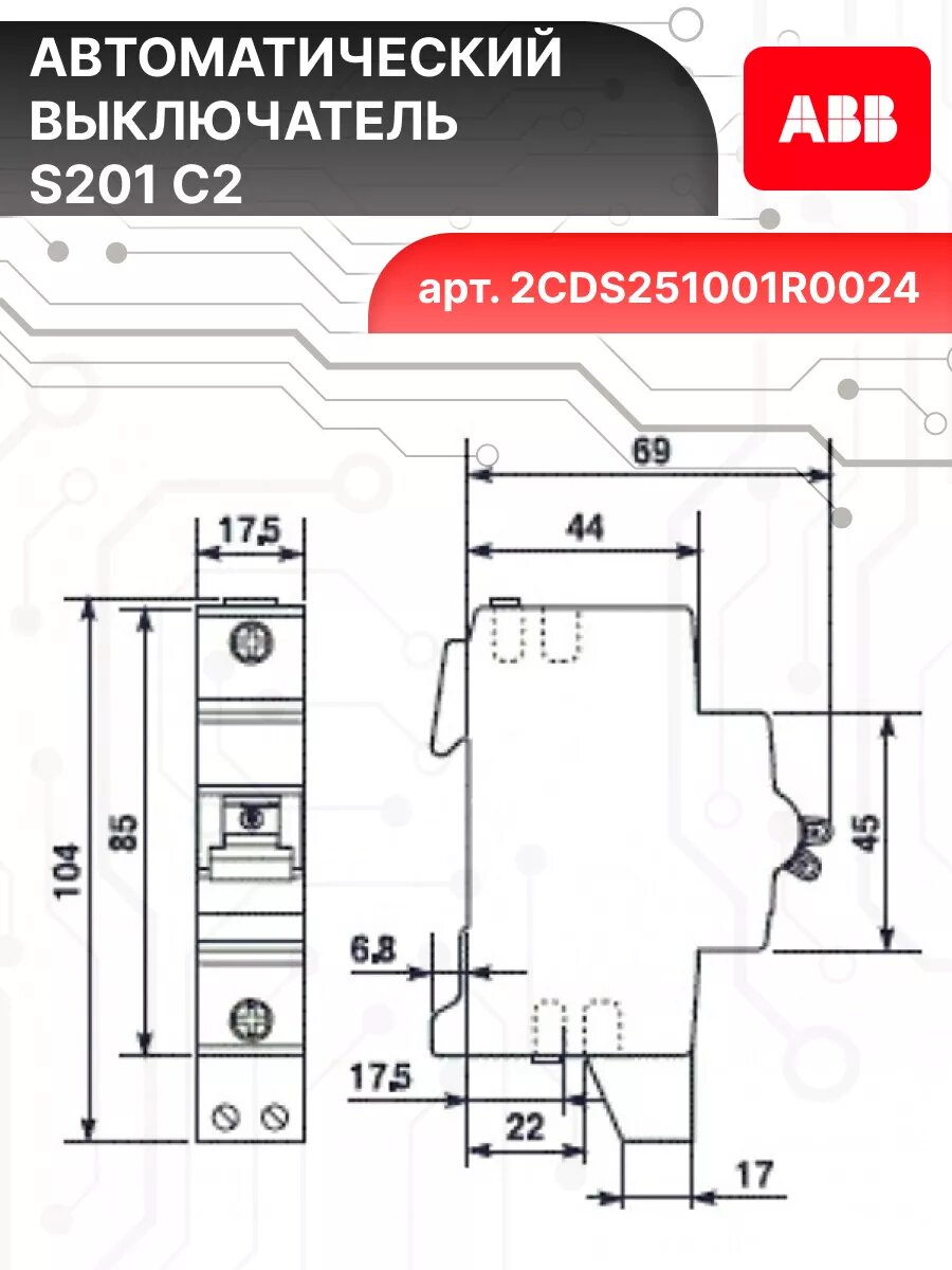 СохранитьАвтоматический выключатель 1P (1П) 2А тип C 6кА S201 ABB 2CDS251001R0024 2шт интересное: